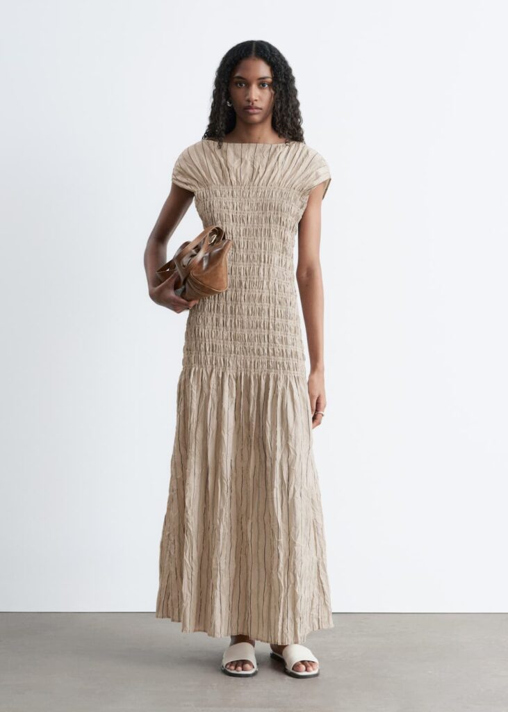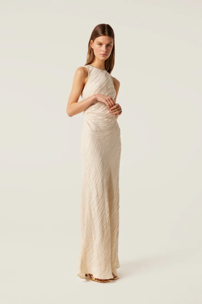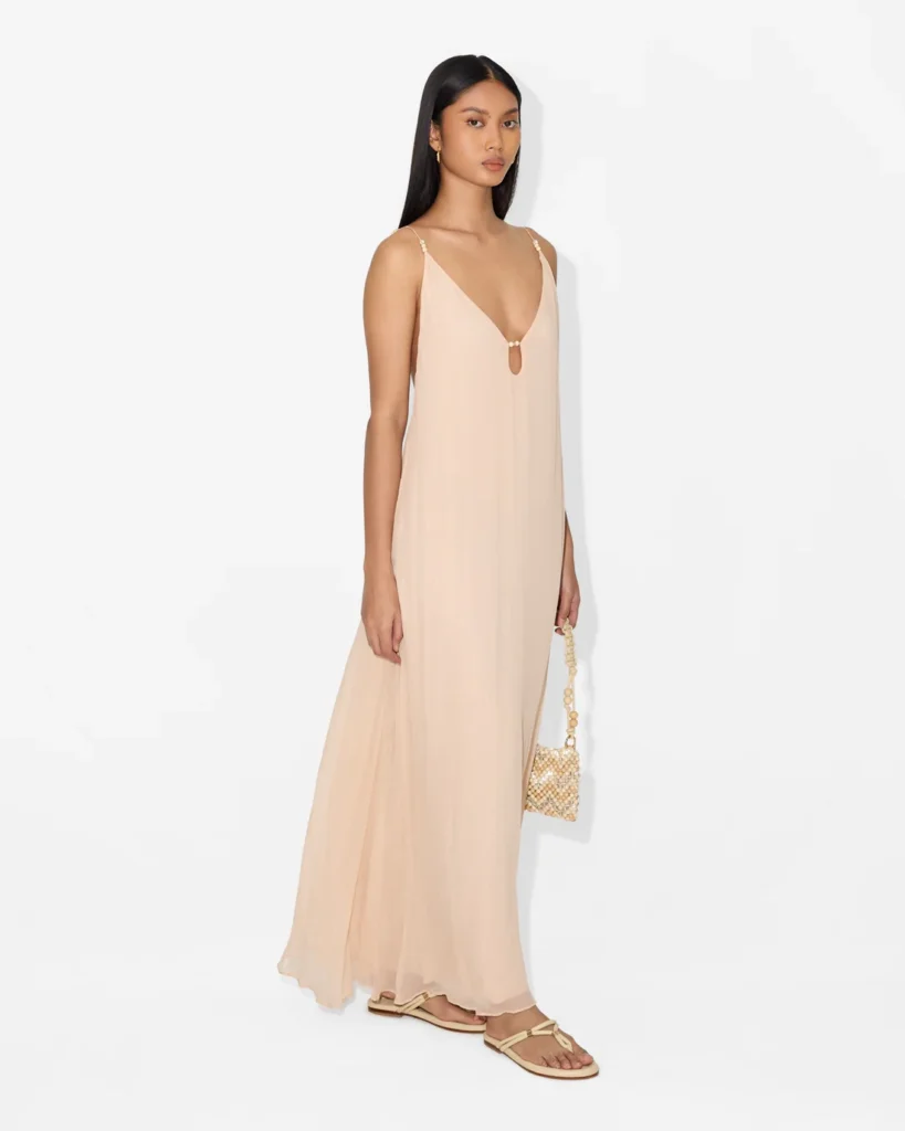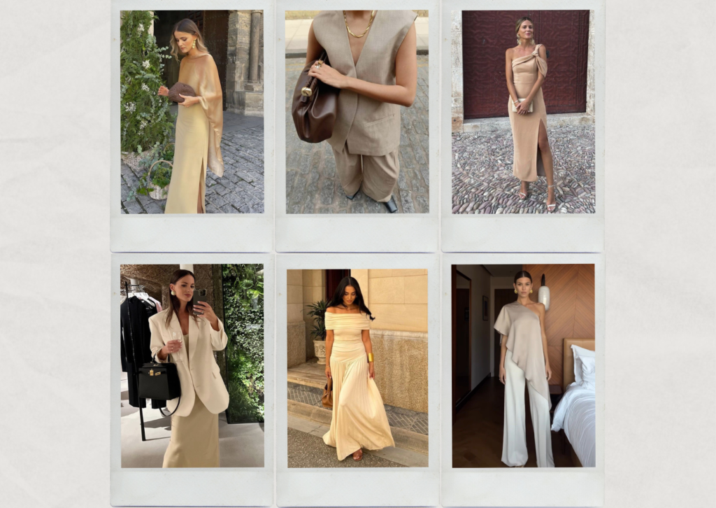 Le beige séduit par sa simplicité. C’est le genre de tenue qu’on enfile sans trop se poser de questions et qui reste chic quoi qu’il arrive. Idéal pour un mariage civil ou une cérémonie épurée, surtout avec de jolis accessoires dorés ou colorés.