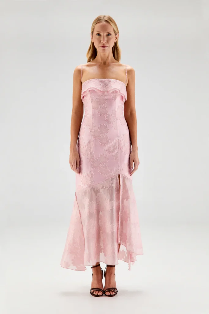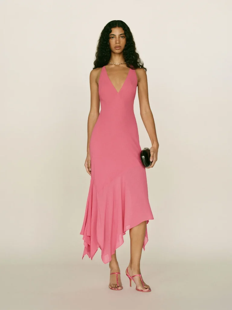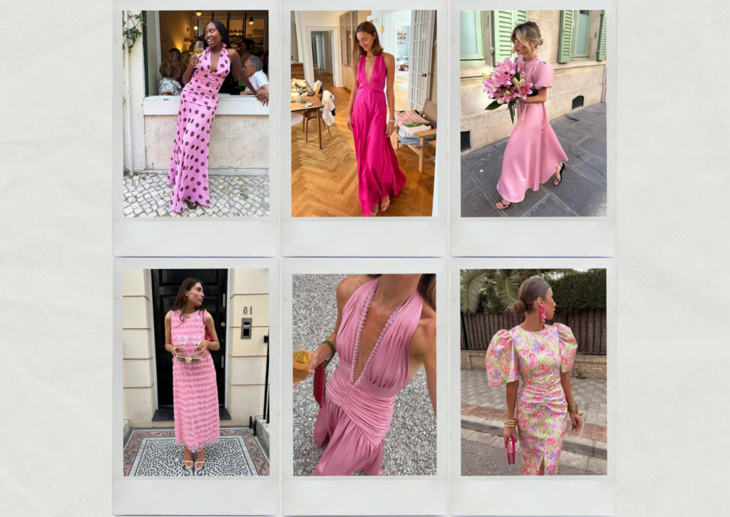 Difficile de se tromper avec du rose ! En version pastel ou plus soutenue, il reste une valeur sûre pour une tenue d’invitée. Le rendu est toujours très réussi, aussi bien en photo que dans la vraie vie.