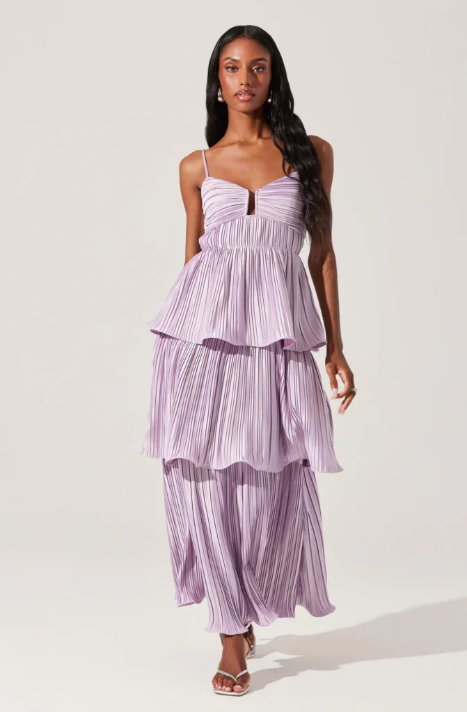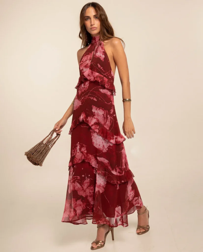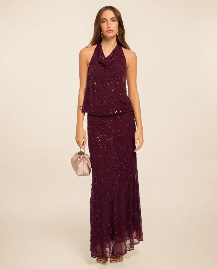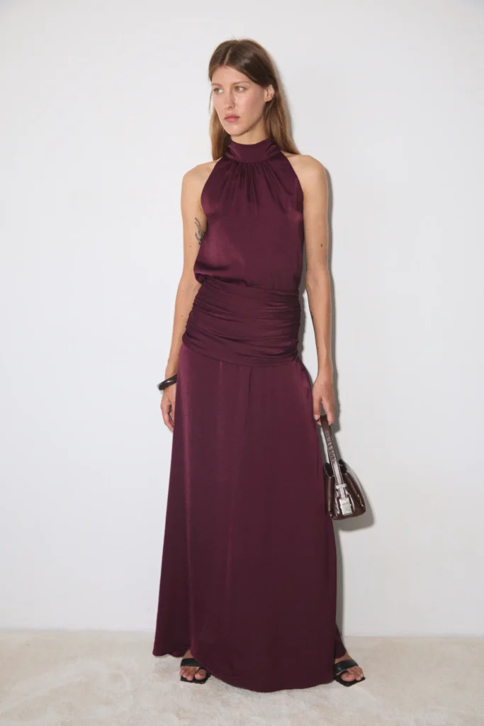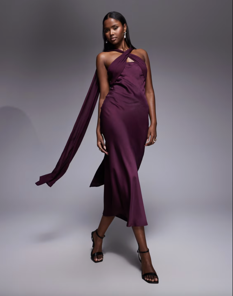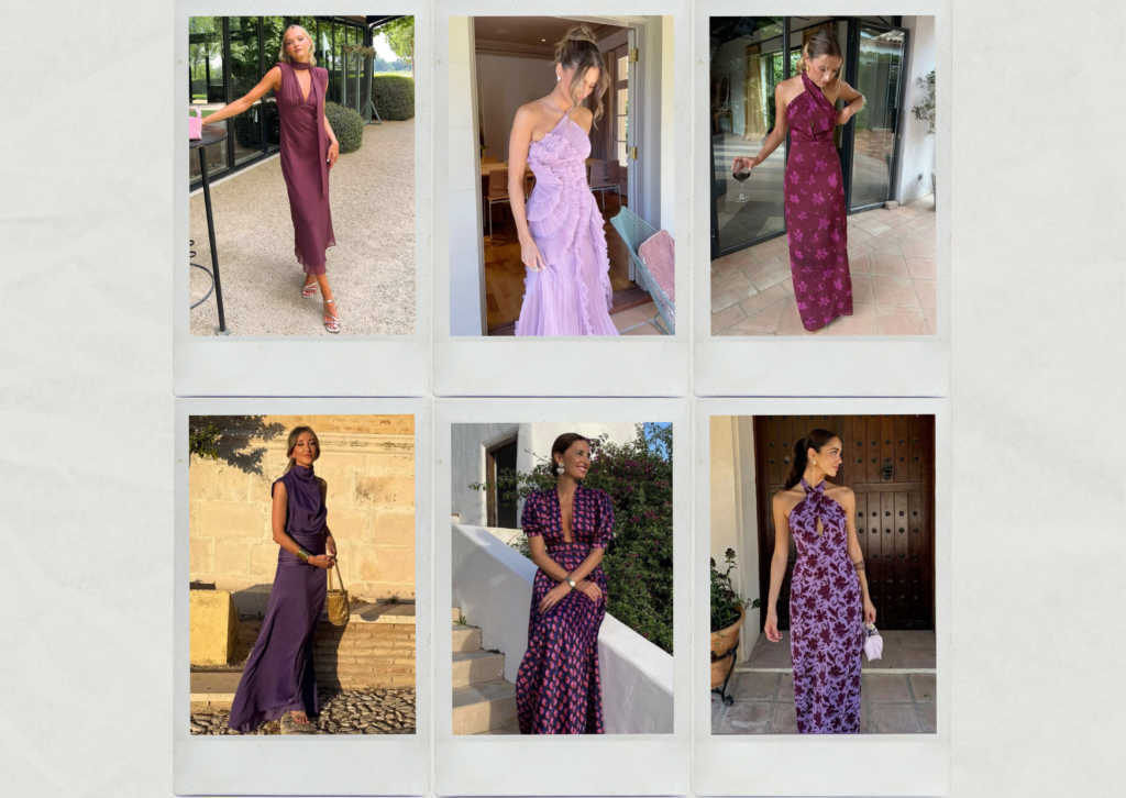 On n’y pense pas toujours au premier abord, et pourtant ce sont des teintes qui fonctionnent très bien pour une tenue d’invitée. Le bordeaux est chic et facile à porter, tandis que le violet apporte une touche un peu plus originale, sans être difficile à assumer. Une bonne option pour celles qui veulent changer des couleurs plus classiques, surtout pour un mariage en fin de journée ou en soirée.