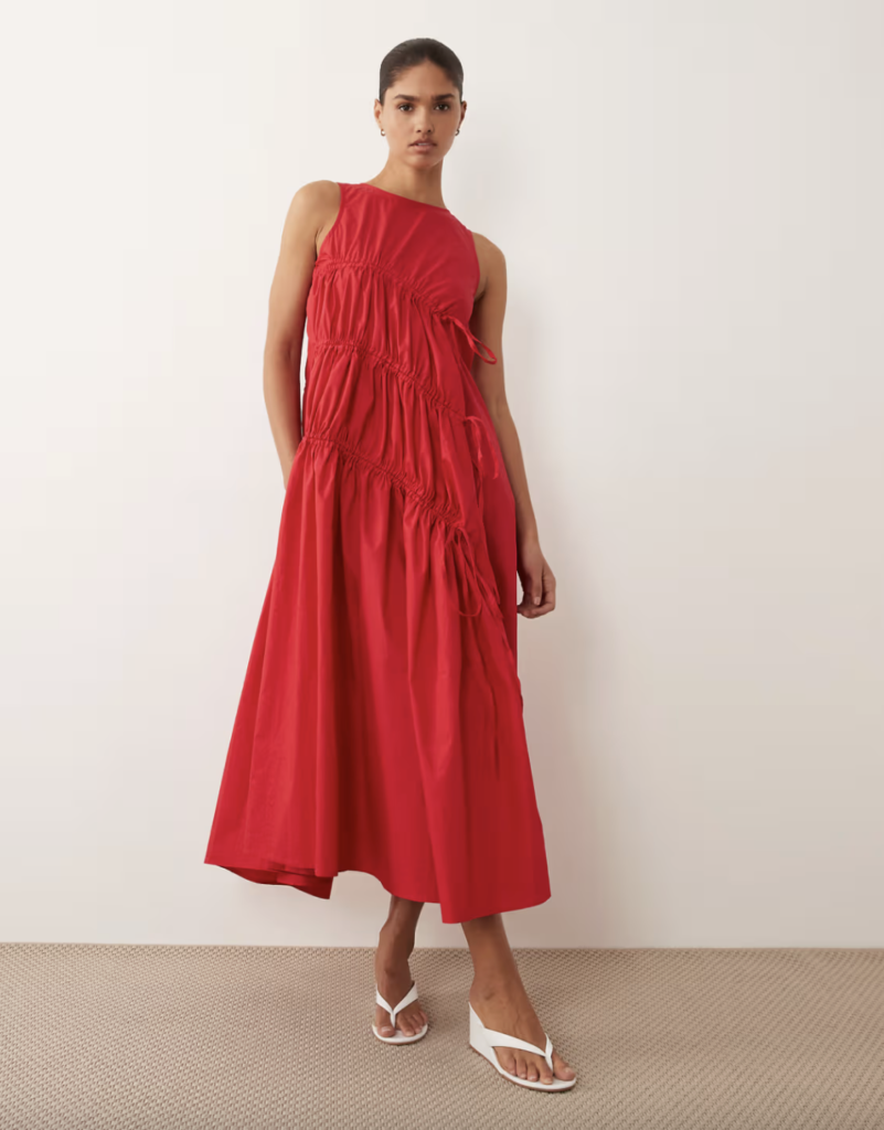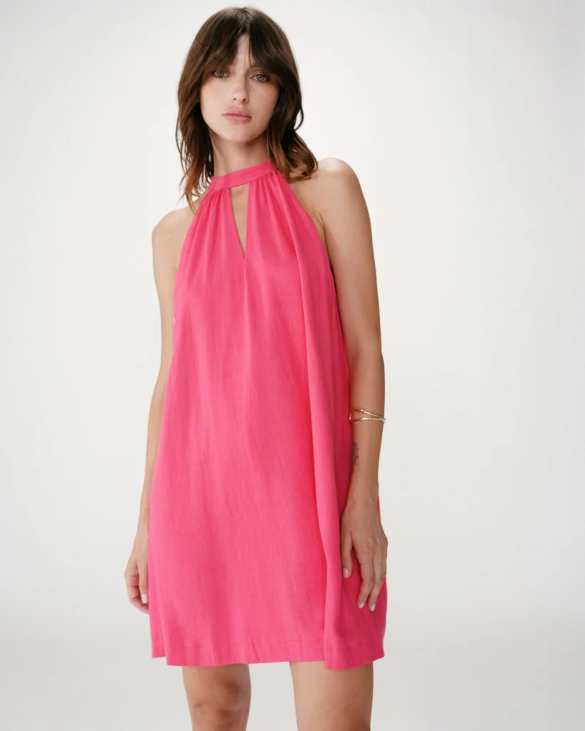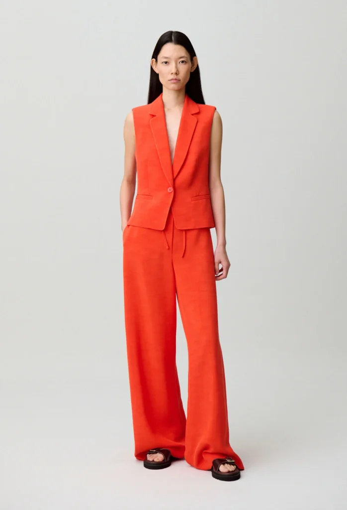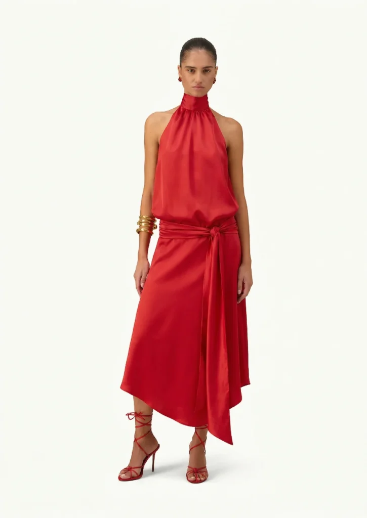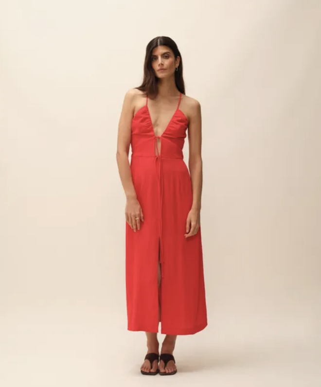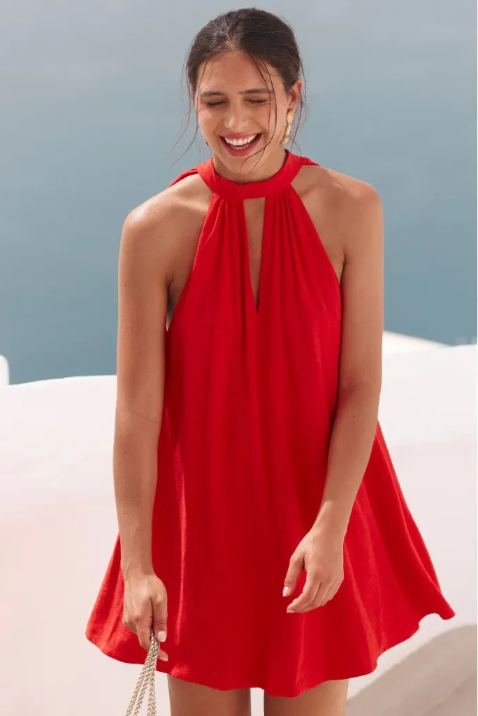 Le rouge peut impressionner, mais bien choisi, il fait toujours son effet. L’idée est de miser sur une coupe simple pour équilibrer la tenue. Résultat : un look qui attire l’œil, sans en faire trop. Et c’est aussi une couleur qui met particulièrement en valeur une peau hâlée en été.